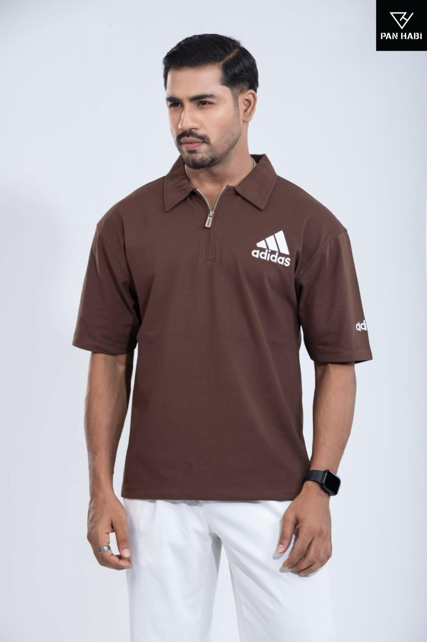 Classic polo collar with a sleek zip detail (if it applies)